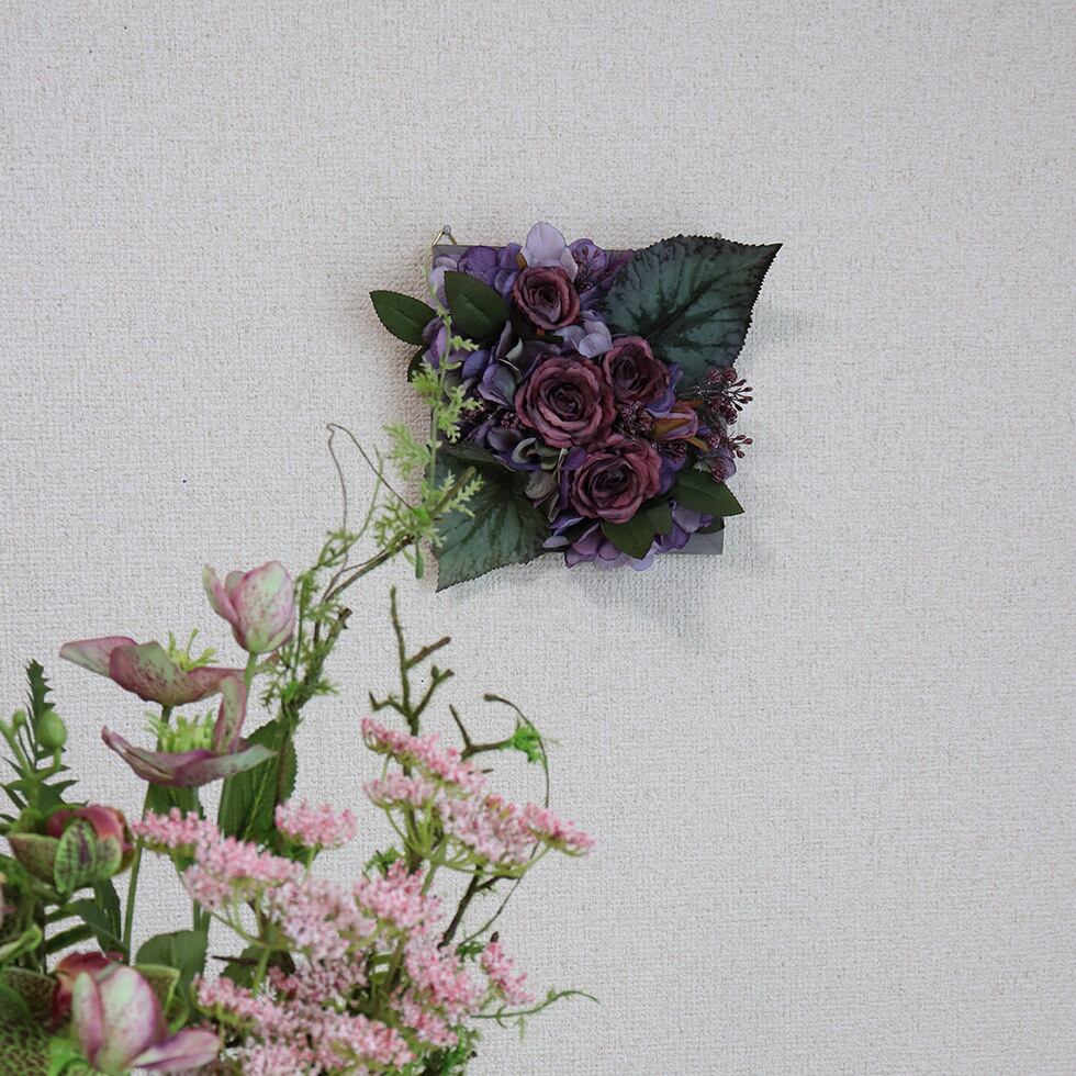 自宅や店舗のインテリアにぴったりのアーティフィシャルフラワーアレンジの壁掛け「ウォールデコボード スクエア」。美しい花のアレンジメントが、お部屋を一気に華やかに演出してくれます。